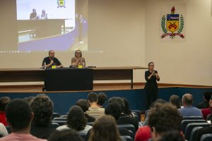 Na sequência, a pró-reitora Sandra agradeceu às equipes envolvidas na organização do evento e destacou o caráter inclusivo e cultural da UFSC, evidenciado pelas apresentações artísticas da abertura. “Que outro espaço de trabalho pode nos oferecer isso?”, questionou. Sandra explicou que o objetivo do curso é “acolher” e apresentar o ambiente de trabalho de forma abrangente, desfazendo a ideia de que todos conhecem a UFSC completamente.