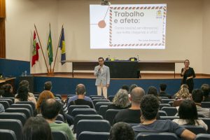 A palestra, conduzida pelo psicanalista Lucas Emanuel de Oliveira, do Serviço de Acolhimento a Vítimas de Violências (SEAViS), vinculado à Pró-Reitoria de Ações Afirmativas e Equidade (Proafe), trouxe reflexões profundas sobre o papel do novo servidor na Universidade. Para ele, a chegada à UFSC representa a oportunidade de tornar uma vida mais interessante, desde que haja engajamento por parte das pessoas: “A implicação de vocês nesse processo vai ser fundamental”.